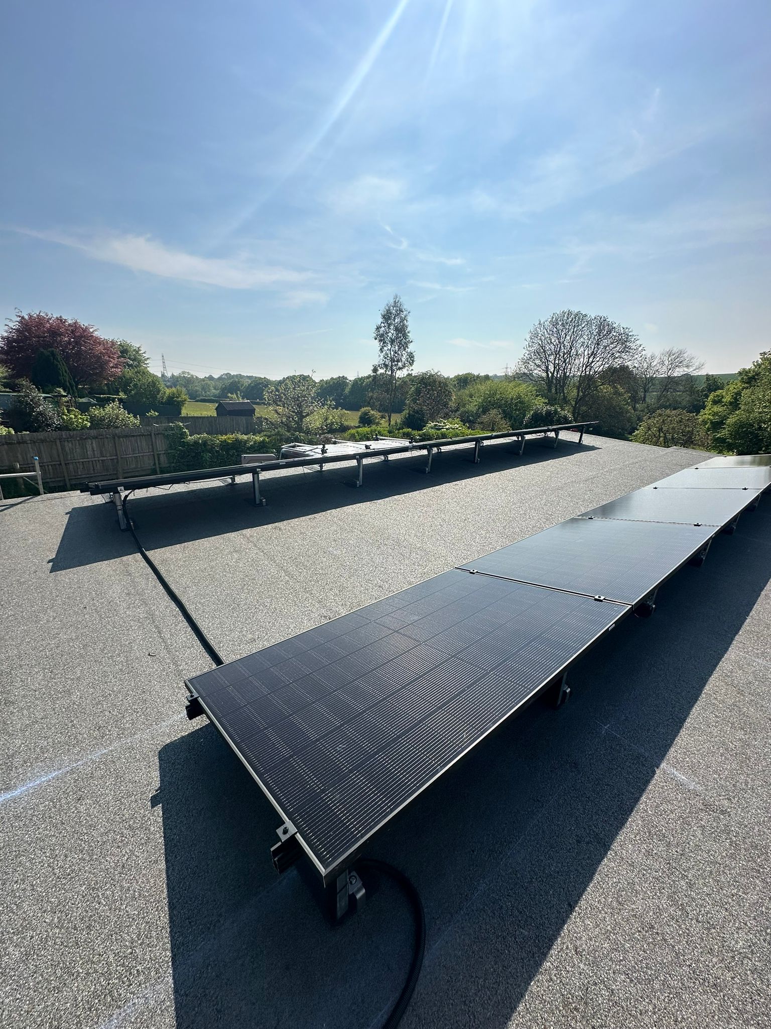 This customer could not have solar on their house, but had a garage that had good space. The only issue was that the roof was angled towards North, rather than South. We designed a mounting system to reverse the pitch of the garage roof to help the panels point in a southerly direction to maximise the amount of sun the panels would get.
